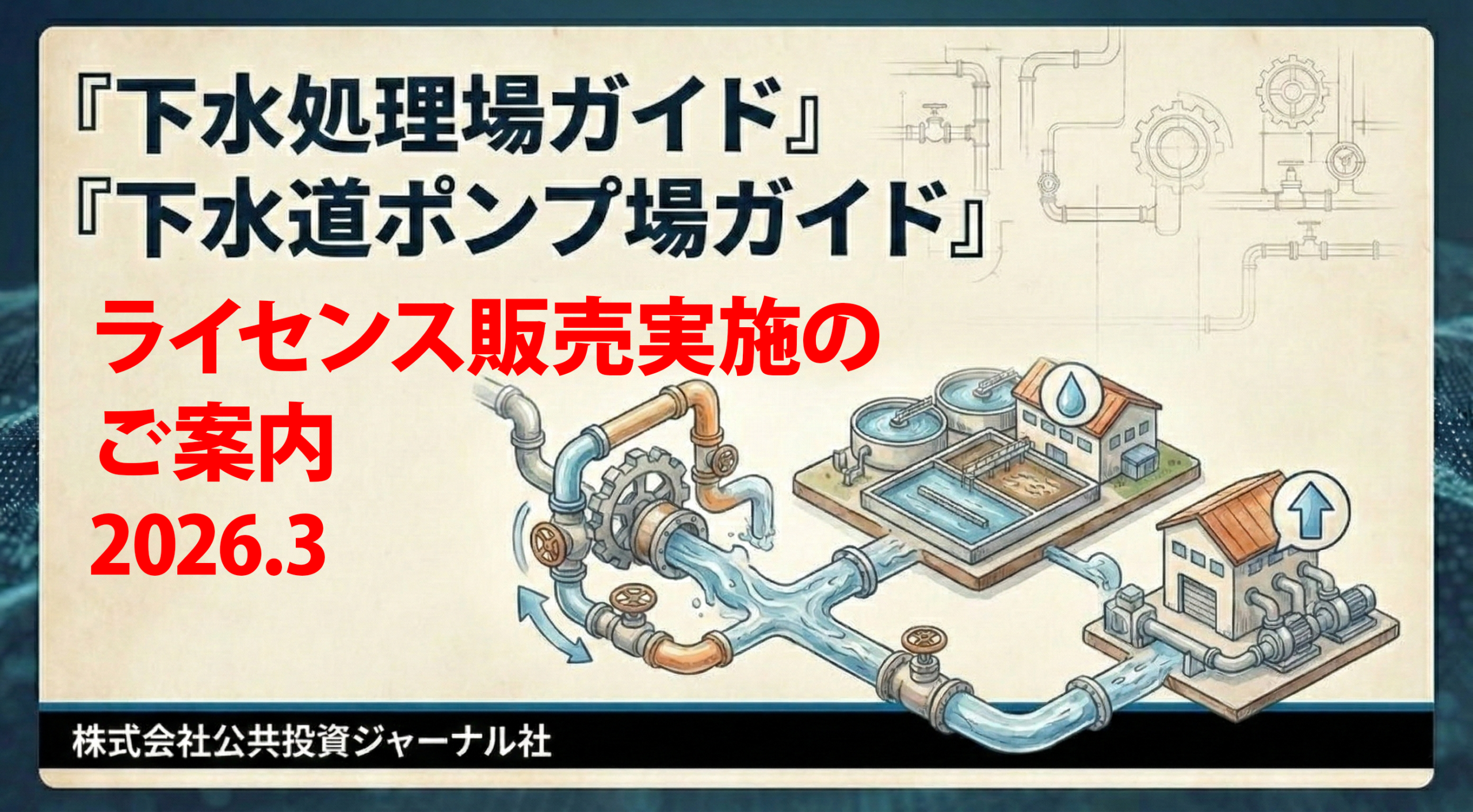 弊社では2026年3月に、デジタルデータ商品「下水道ポンプ場ガイド2026」をリリースします。これにともない今後のデジタル商品「下水道ポンプ場ガイド」「下水処理場ガイド」「汚泥焼却炉・炭化炉調査」について、ライセンス販売を実施させていただきます。