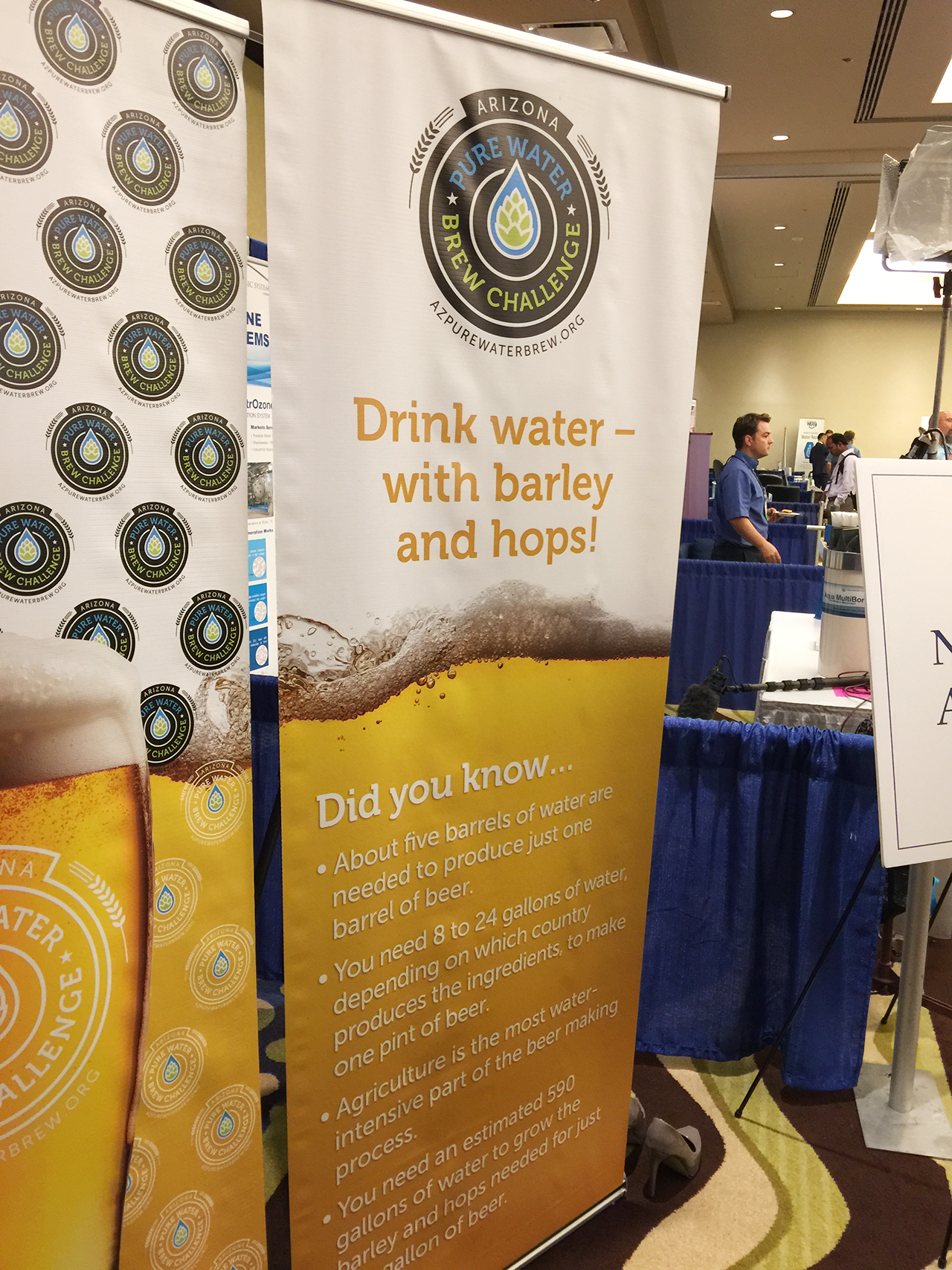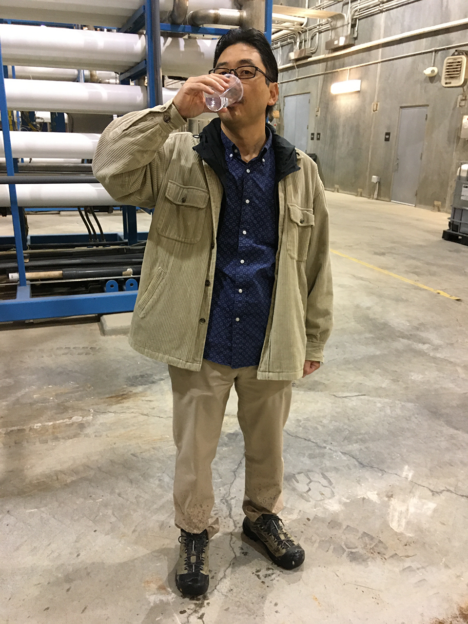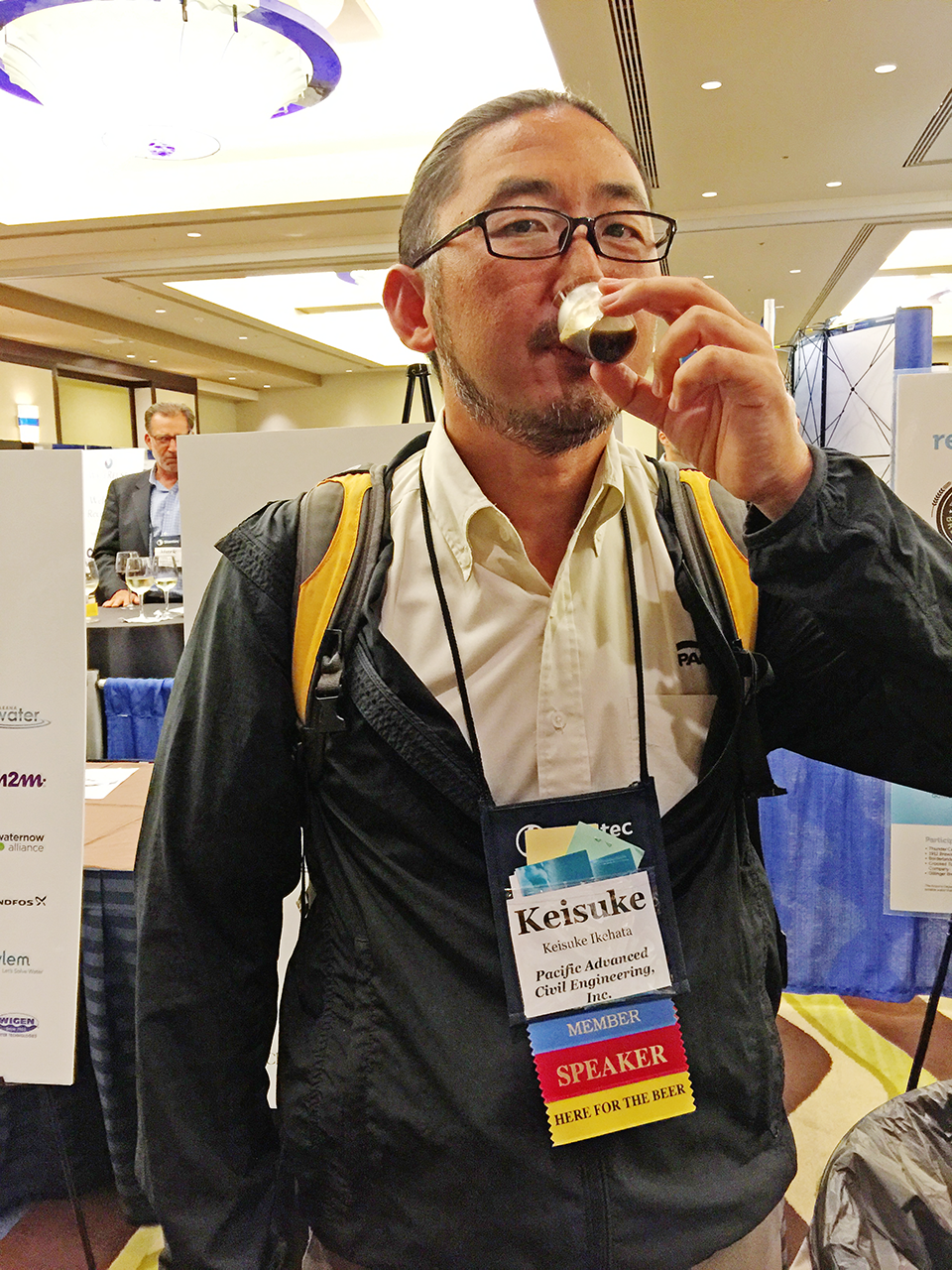 【写真6】アリゾナ州フェニックス市で開催された水再利用協会シンポジウムで高度再生水を用いた地ビールを試飲する筆者(2017年)
