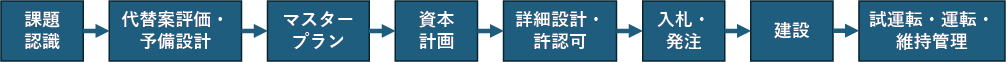 | 代替案評価・予備設計 | 技術比較、ベンチスケール・パイロット試験、予備設計 | 事業体、コンサルティングエンジニア、ベンダー、技術提供会社、規制当局 |