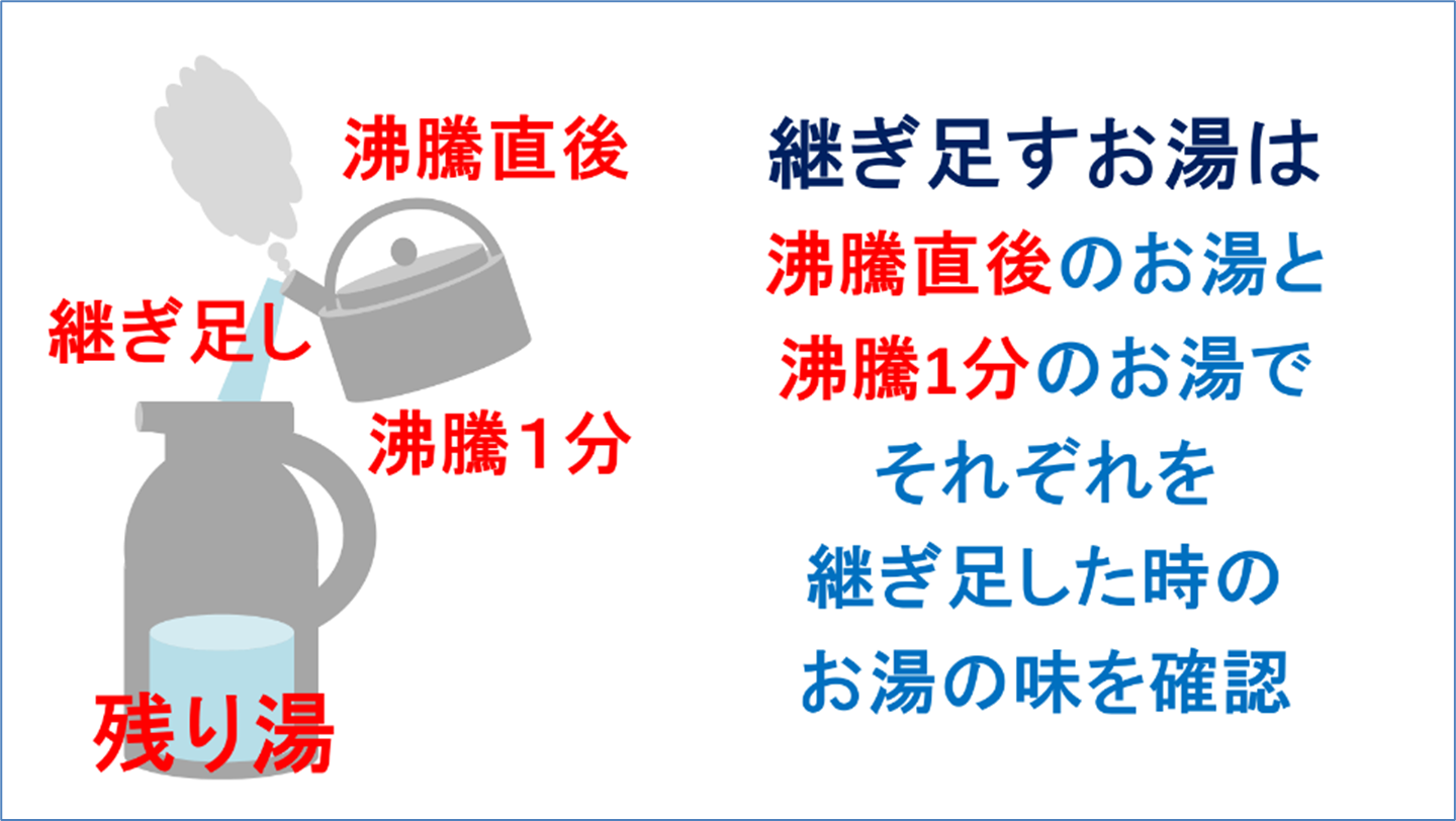 数時間後に継ぎ足すお湯も、沸騰直後のお湯と沸騰1分のお湯です。