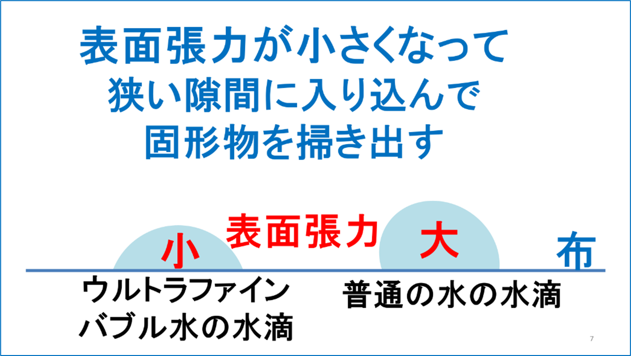 テレビCMでは、顔に油性ペンで書いた太い線がシャワーで消えました。万博ではこのシャワーを使った人間洗濯機が話題になりました。この水には超微細な気泡が入っています。この水をウルトラファインバブル水といいます。シャワーだけでなく、洗濯機や湯沸かし器でも、産業界では魚養殖や農業などでも広く活躍しています。