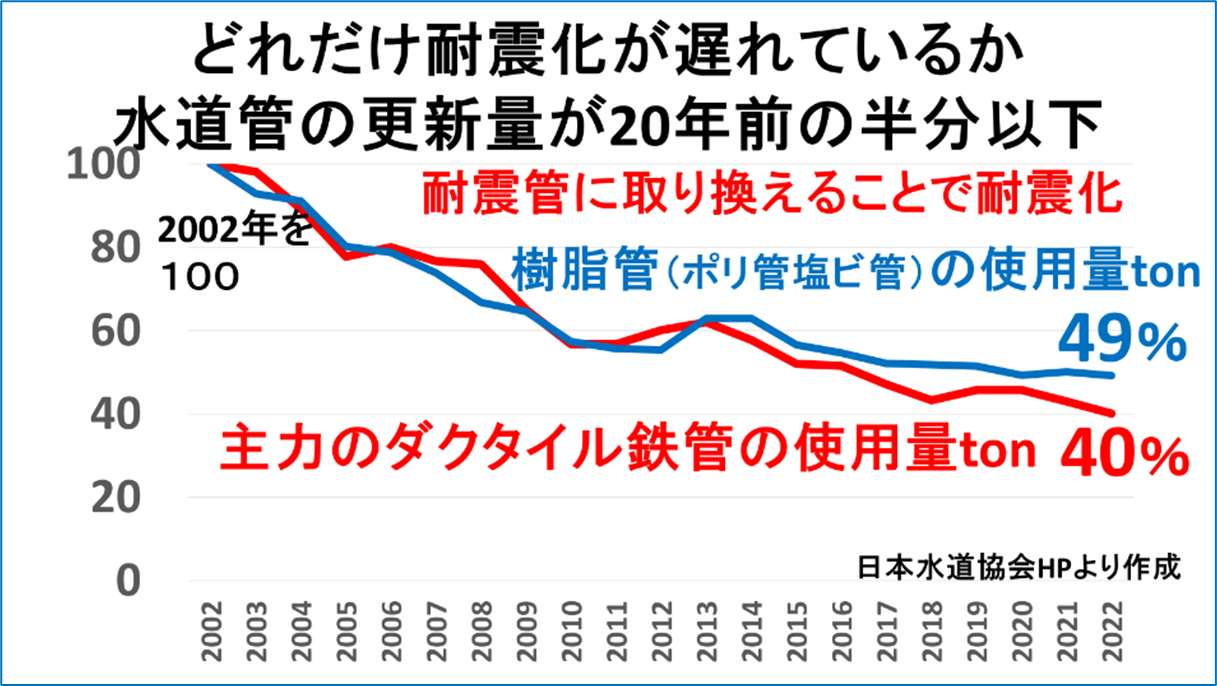 大地震は、今後必ず発生します。更新を遅らせることは、将来の長期の断水リスク、事故リスクを確実に高め、致命的な事態を招くことになります。事業体は、震災時でも市民が水を使えるよう、事前対策に最善を尽くす責務があります。そのためには、将来のリスクとコストを市民に正直に伝え、料金改定について、丁寧かつ粘り強い説明を尽くしていく必要があります。