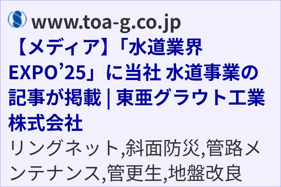 2025.08.08 「水道業界EXPO’25」に当社 水道事業の記事が掲載 | 東亜グラウト工業