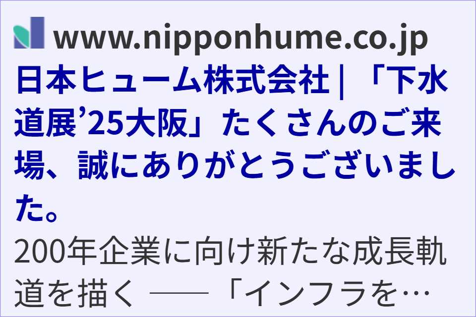 2025.08.08 「下水道展’25大阪」たくさんのご来場、誠にありがとうございました。 | 日本ヒューム