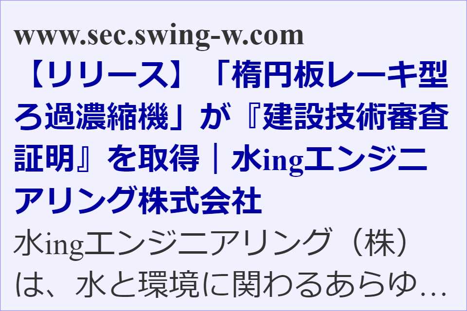 2024.03.15 「楕円板レーキ型ろ過濃縮機」が『建設技術審査証明』を取得/水ingエンジ | 水ing