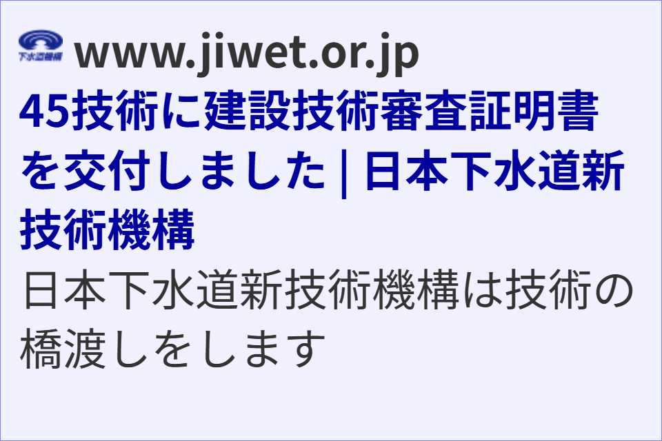 2026.03.19 45技術に建設技術審査証明書を交付しました | 日本下水道新技術機構