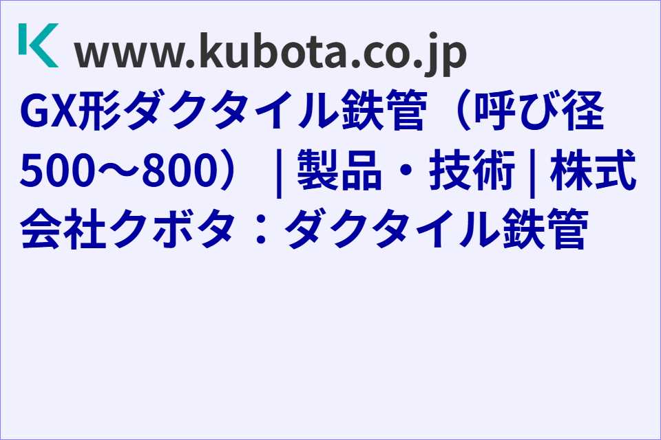 2026.02.19 GX形ダクタイル鉄管ページ(呼び径500~800)を更新しました。 | クボタ