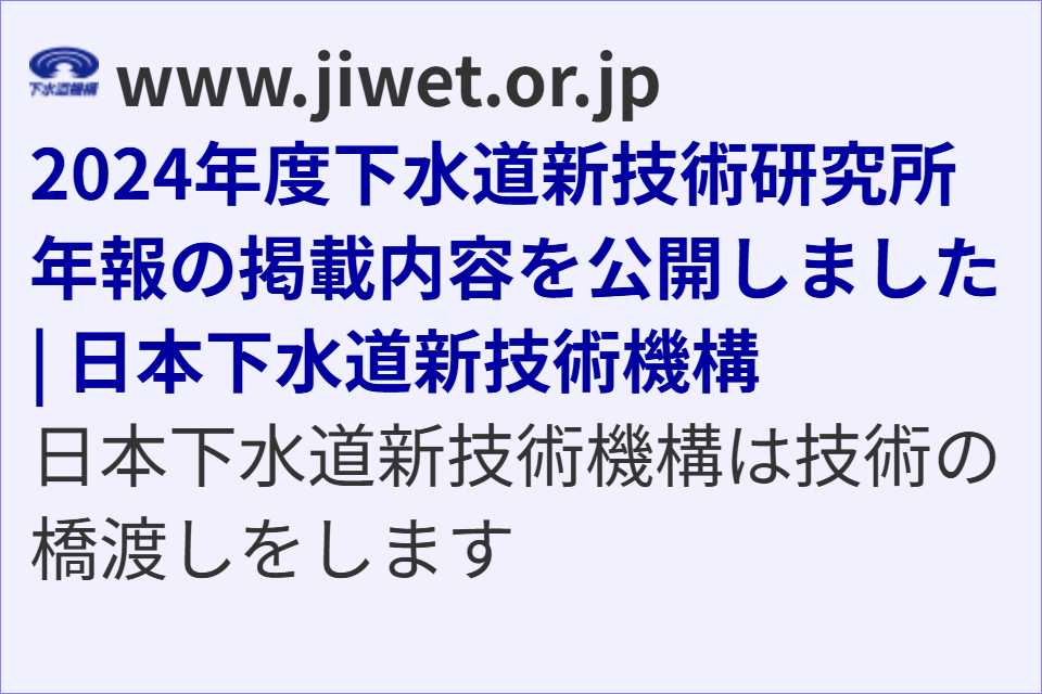 2026.03.09 2024年度下水道新技術研究所年報の掲載内容を公開しました | 日本下水道新技術機構
