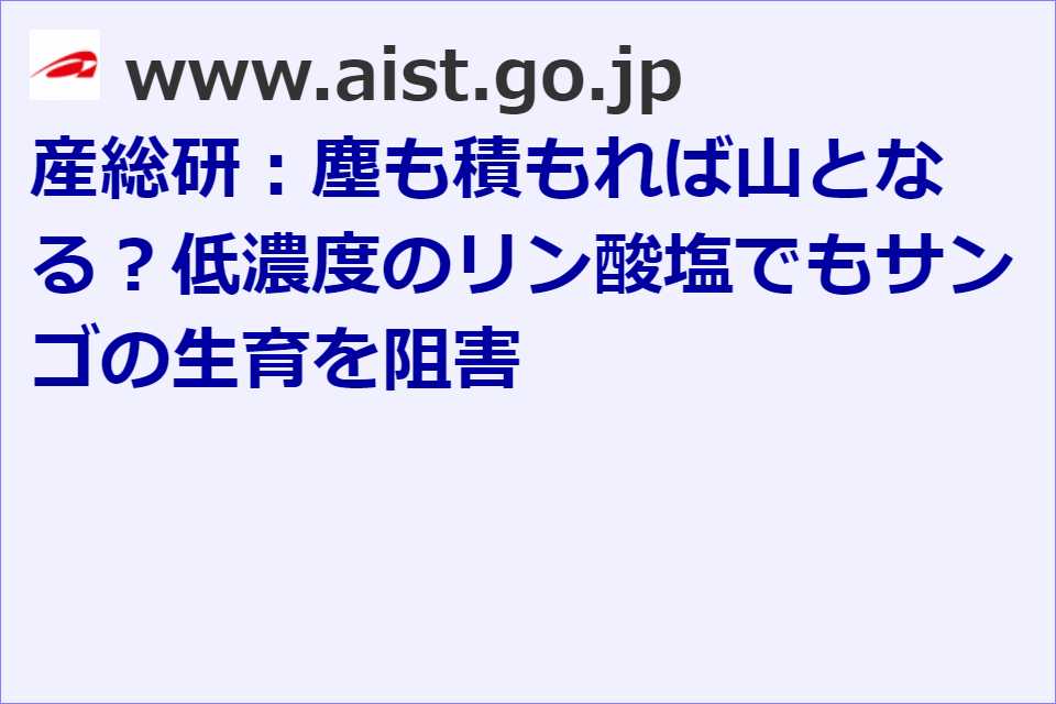2025.01.10 塵も積もれば山となる?低濃度のリン酸塩でもサンゴの生育を阻害 -稚サンゴの飼育実験から負荷量の重要性を検証- | 産総研
