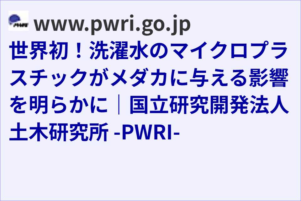 2025.06.17 世界初!洗濯水のマイクロプラスチックがメダカに与える影響を明らかに~家庭からの洗濯排水が水環境に及ぼす影響解明の糸口へ~ | 土木研究所