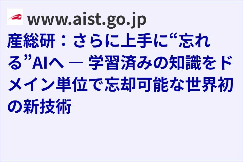2025.12.02 さらに上手に“忘れる”AIへ~学習済みの知識をドメイン単位で忘却可能な世界初の新技術 | 産総研