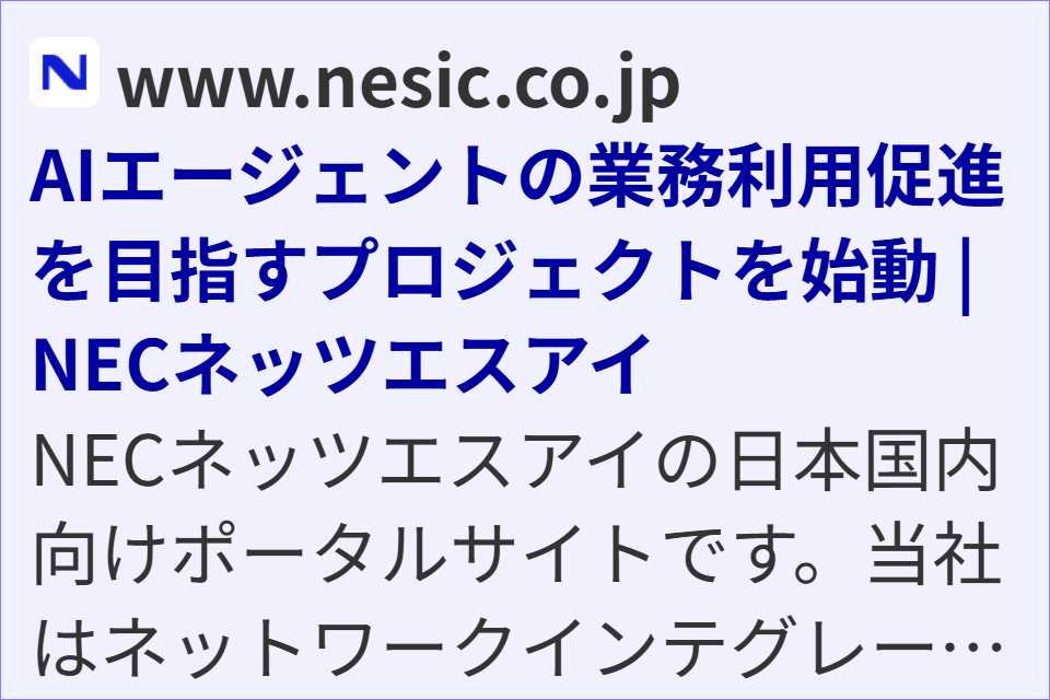 2025.12.04 AIエージェントの業務利用促進を目指すプロジェクトを始動NEW | NECネッツエスアイ
