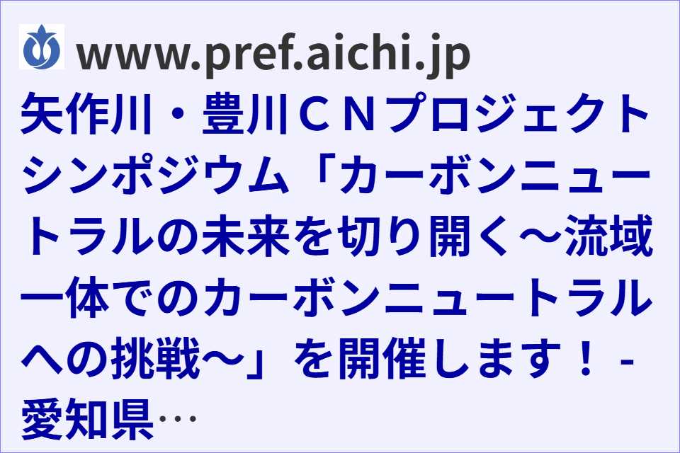 2025.10.30 矢作川・豊川CNプロジェクトシンポジウム「カーボンニュートラルの未来を切り開く~流域一体でのカーボンニュートラル への挑戦~」を開催します! | 愛知県