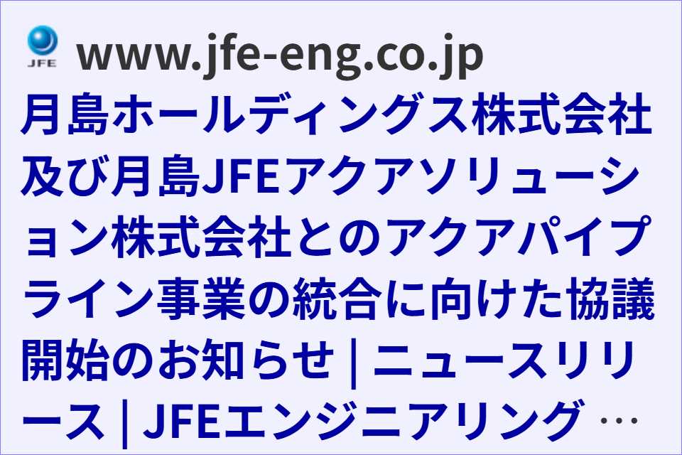2025.11.07 月島ホールディングス株式会社及び月島JFEアクアソリューション株式会社とのアクアパイプライン事業の統合に向けた協議開始のお知らせ | JFEエンジニアリング