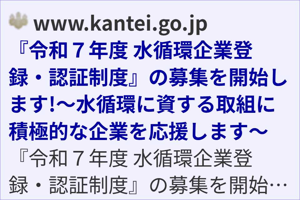 2025.06.27 『令和7年度 水循環企業登録・認証制度』の募集を開始します! 〜水循環に資する取組に積極的な企業を応援します〜 | 水循環政策本部