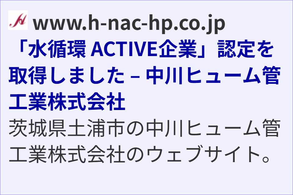 2025.11.10 「水循環 ACTIVE企業」認定を取得しました | 中川ヒューム管工業