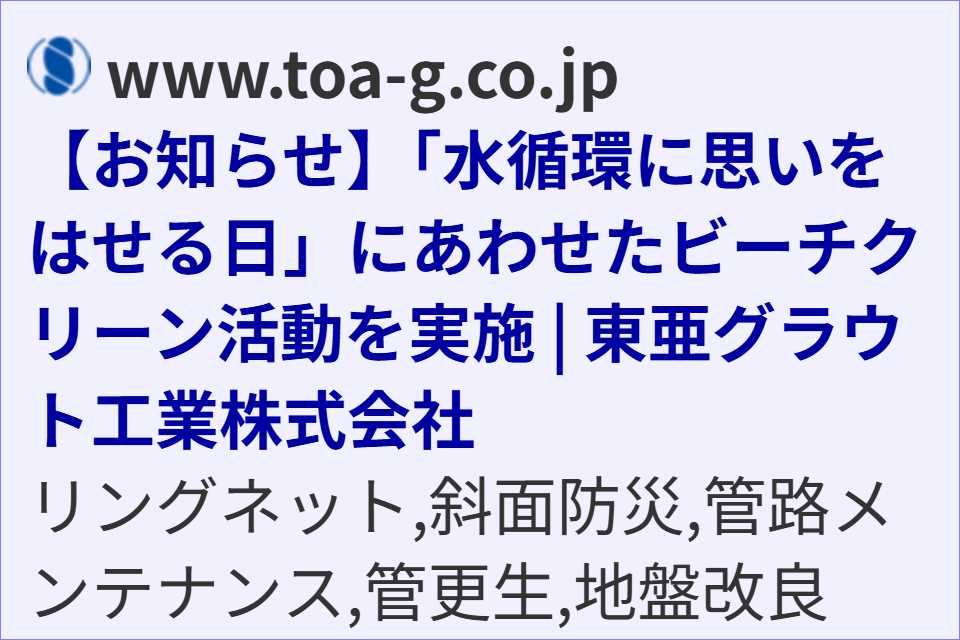 2025.11.07 【お知らせ】「水循環に思いをはせる日」にあわせたビーチクリーン活動を実施 | 東亜グラウト工業