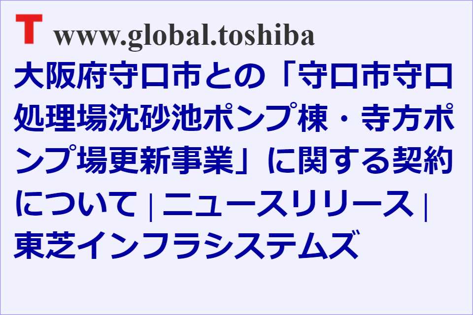 2024.08.21 大阪府守口市との「守口市守口処理場沈砂池ポンプ棟・寺方ポンプ場更新事業」に関する契約について | 東芝インフラシステムズ