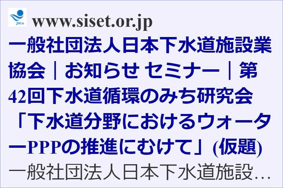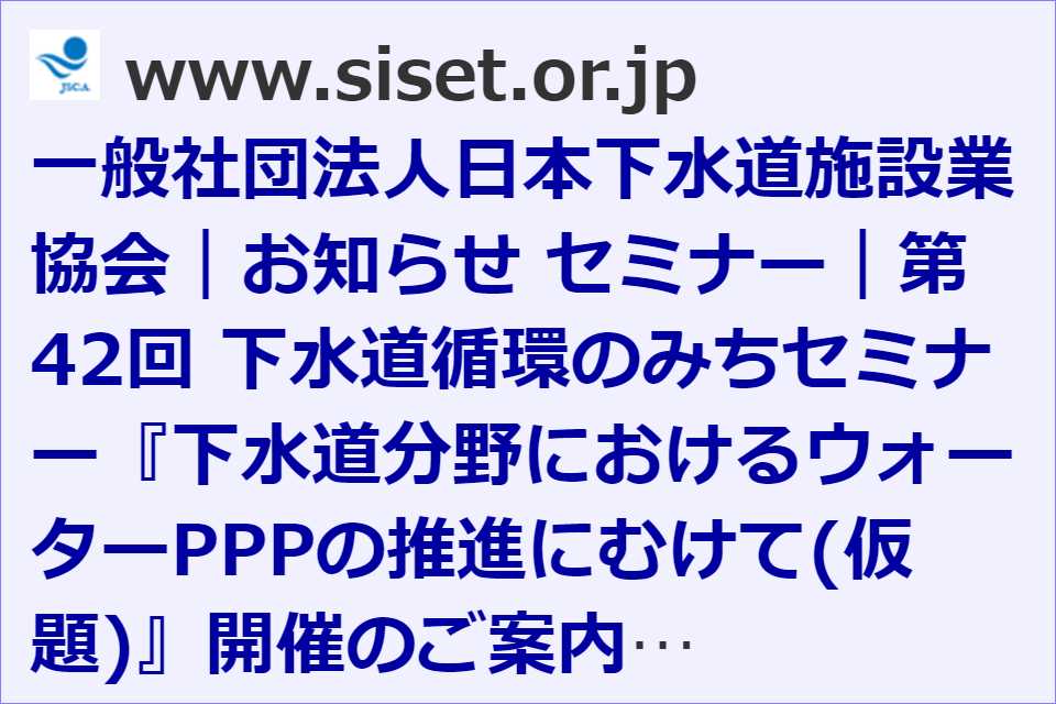 2024.08.22 第42回 下水道循環のみちセミナー『下水道分野におけるウォーターPPPの推進にむけて(仮題)』開催のご案内 | 日本下水道施設業協会