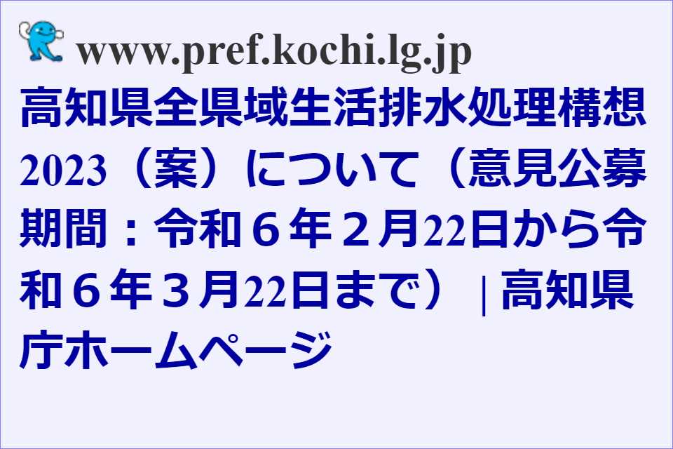 2024.02.22 高知県全県域生活排水処理構想2023(案)について(意見公募期間:令和6年2月22日から令和6年3月22日まで) | 高知県