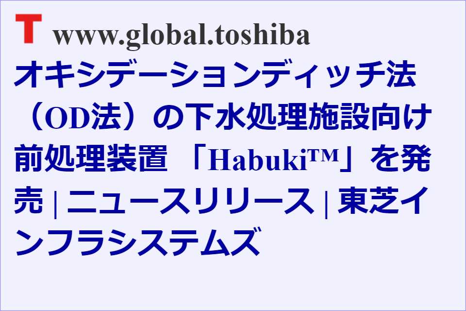 2024.07.22 オキシデーションディッチ法(OD法)の下水処理施設向け前処理装置 「Habuki™」を発売 | 東芝インフラシステムズ