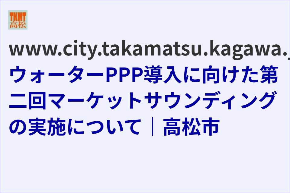 2026.03.24 ウォーターPPP導入に向けた第二回マーケットサウンディングの実施について | 高松市