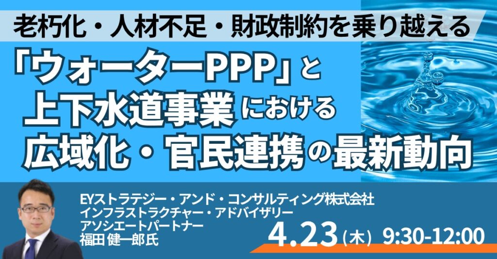 2026.04.08 【JPIセミナー】「“ウォーターPPP” と上下水道事業における広域化・官民連携の最新動向」4月23日(木)開催 | PR TIMES