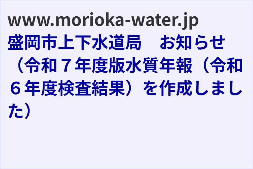 2025.09.25 令和7年度版水質年報(令和6年度検査結果)を作成しました | 盛岡市上下水道局