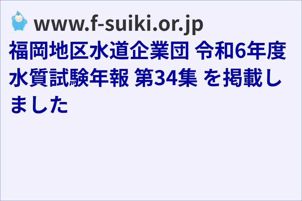 2025.10.03 令和6年度水質試験年報 第34集を掲載しました | 福岡地区水道企業団